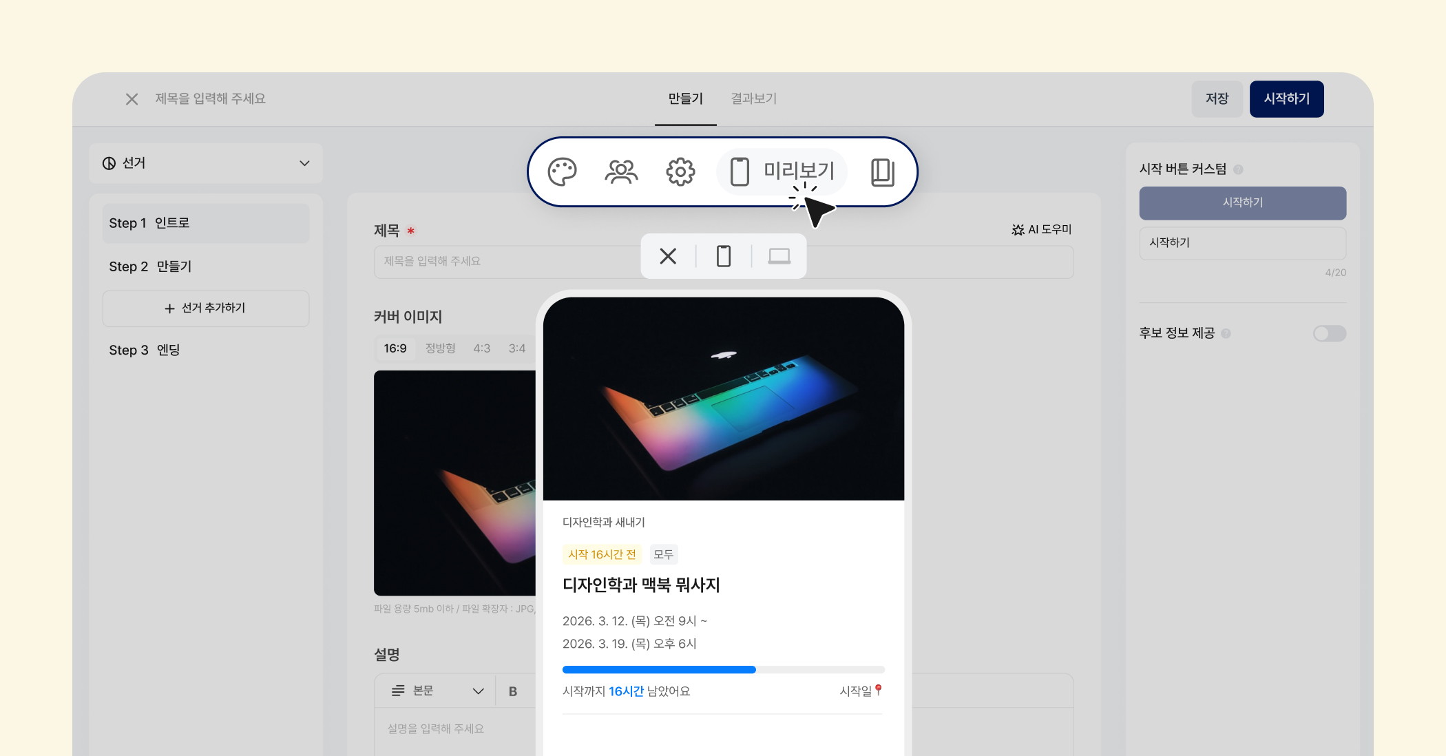 이미지 비율 설정 기능은 선거와 투표에만 제공됩니다!
