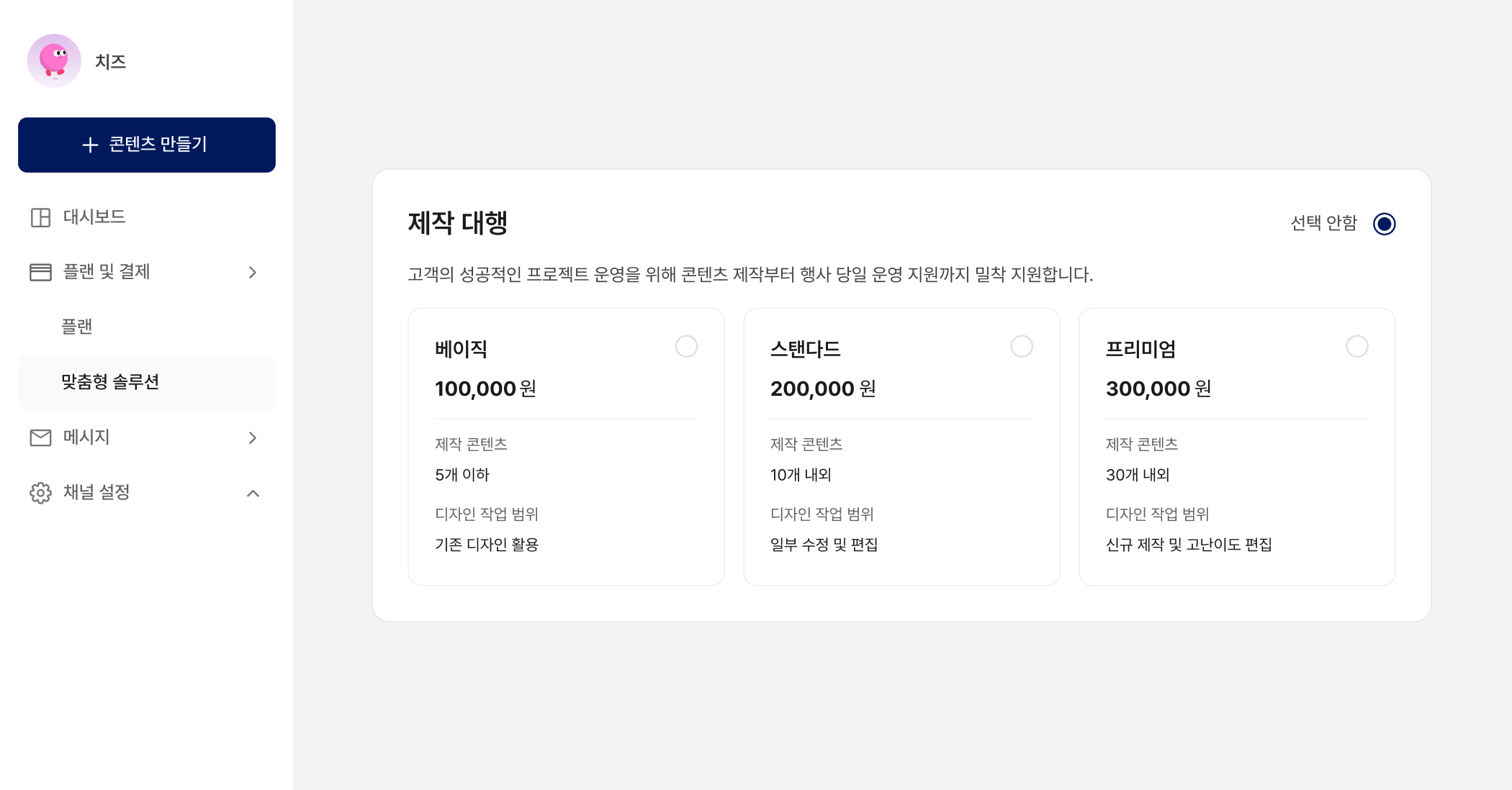 베이직 | 100,000원 | 콘텐츠 5개 이하 |