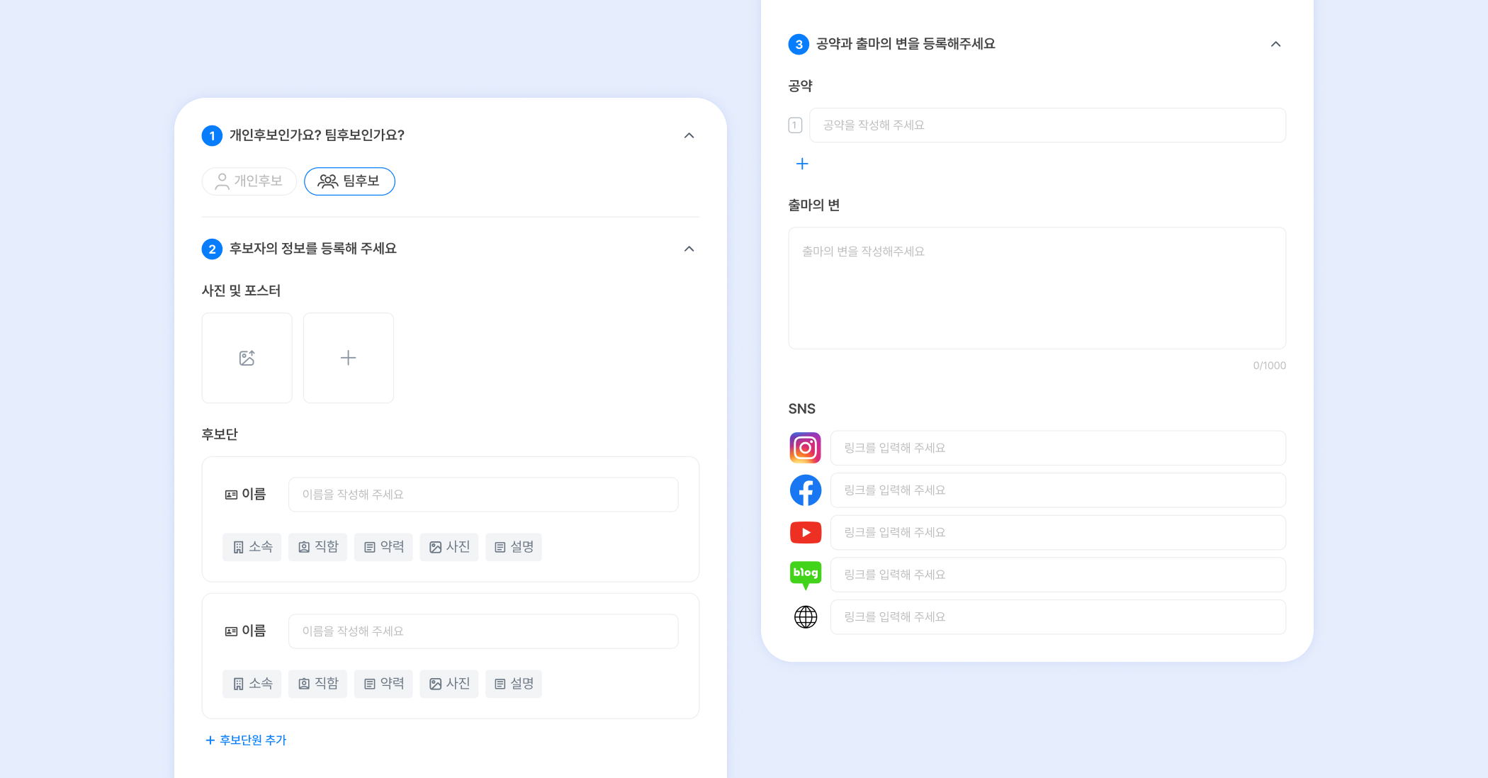 후보 칸에는 참여자들에게 전달하고 싶은 후보자 정보를 입력할 수 있어요.
