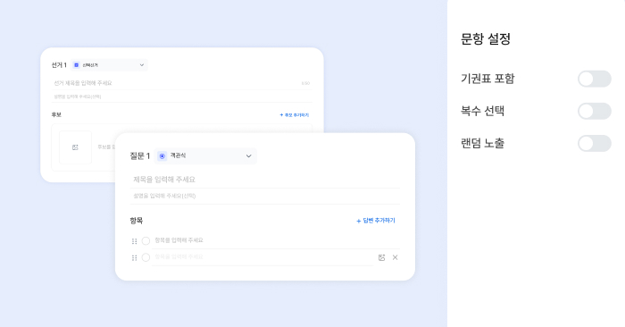 유형별 옵션 | 기권표 포함 | 복수 선택 | 랜덤노출 |