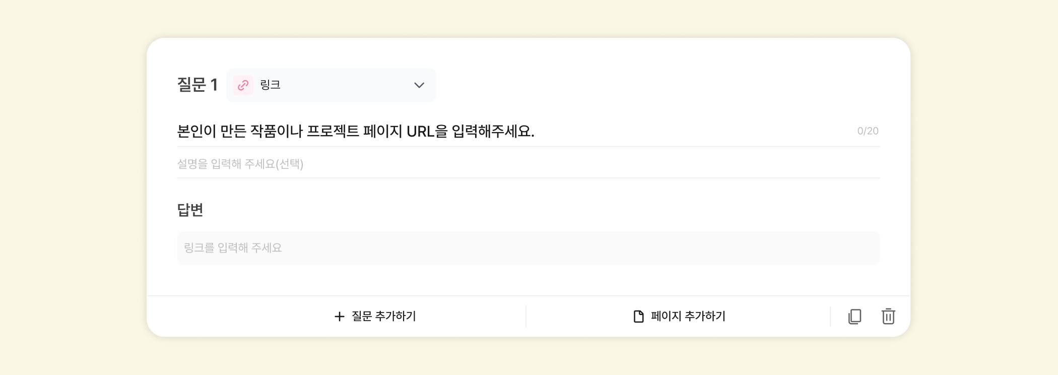 사이트 주소 등 각종 링크를 입력할 수 있는 질문 유형이에요.