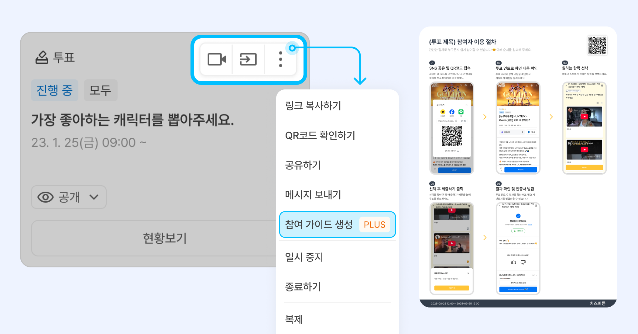 참여 가이드 생성 기능은 플러스 플랜부터 이용 가능해요!
