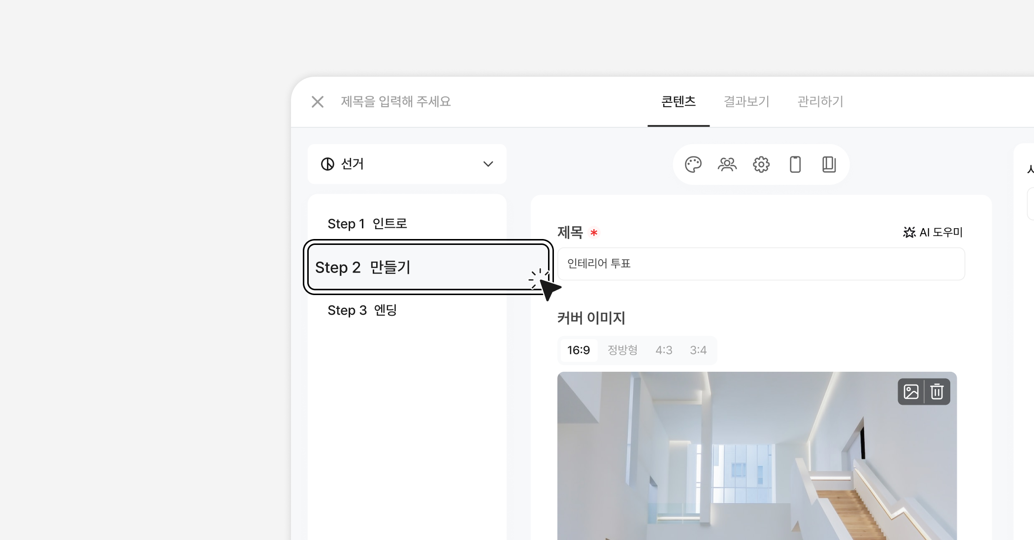 [만들기] 탭에서는 총 3단계로 콘텐츠를 완성하게 돼요.